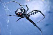 Black Widow spiders are common at OVF. The female's bites are extremely painful, though rarely fatal. They particularly like to hide in unkempt, overstuffed mailboxes and under stacks of discarded wood. Wearing gloves while working at OVF is always a good idea. If bitten, seek medical treatment.